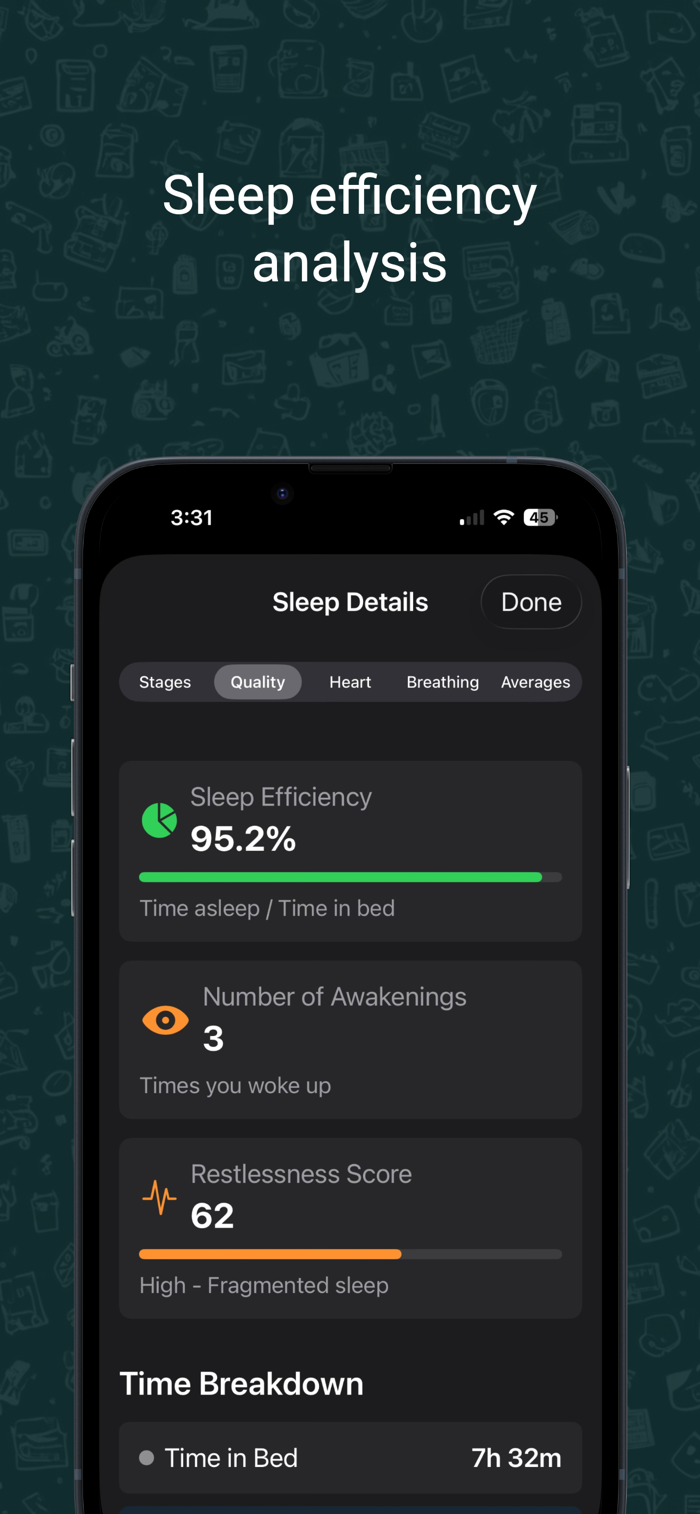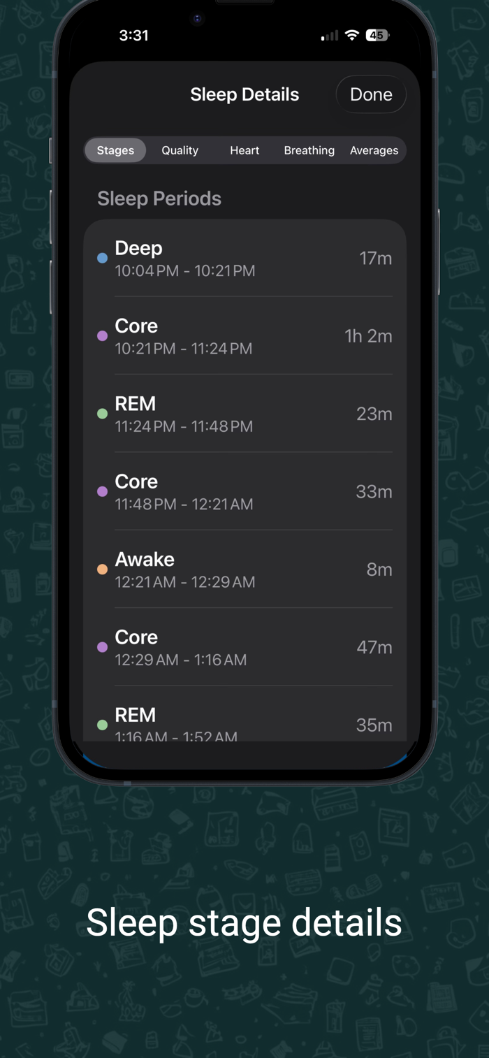 该产品可助你了解睡眠质量,明白晨起状态差异的原因。能提供每日睡眠细分,呈现深睡、核心睡眠、REM睡眠及清醒时长;给出睡眠阶段详情,展现夜间睡眠周期全貌;进行睡眠效率分析,了解实际睡眠状况;监测夜间心率,发现规律;追踪呼吸速率,掌握睡眠呼吸模式;还能浏览历史数据,便于识别问题。