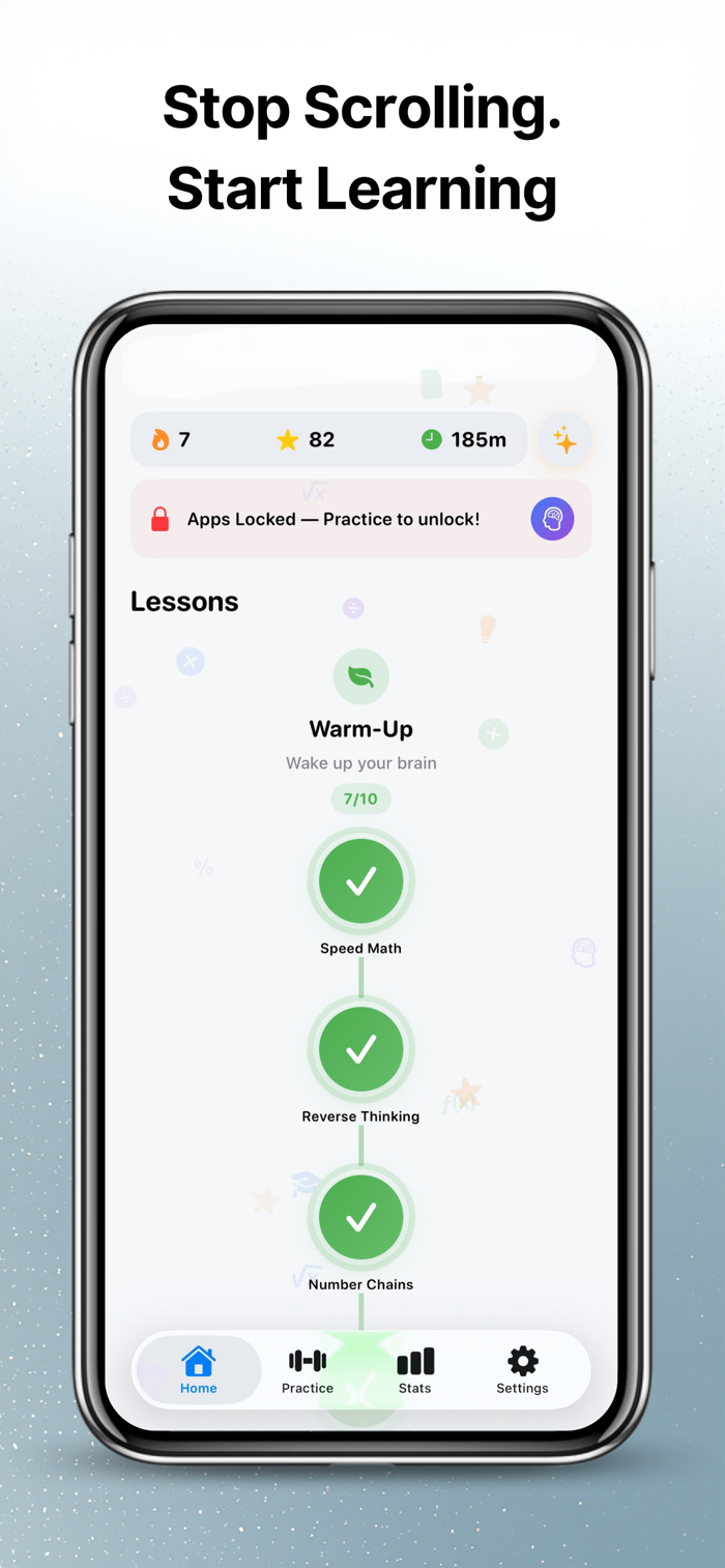 MathBrain Unlock turns everyday screen time into a moment of learning.