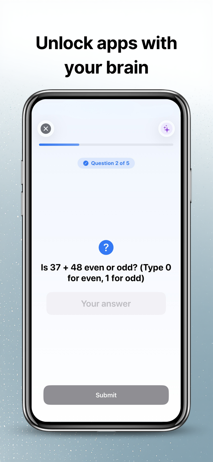 Before selected apps open, users solve one short math, logic, or science challenge. It is a simple idea with a powerful result: less passive screen time, more focus, curiosity, and daily mental practice.