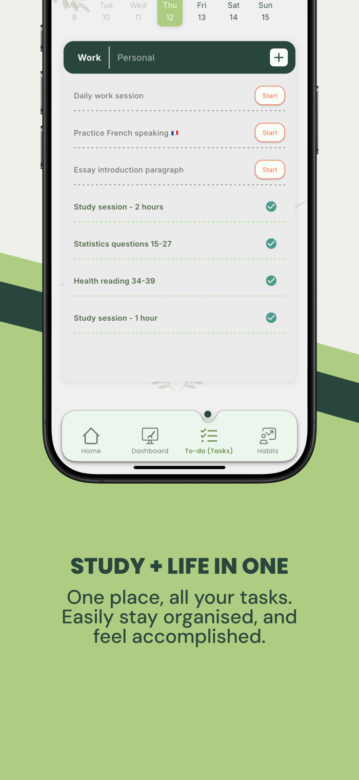 Smart To-Do List: Organize your life with a dual-view list that separates your "Personal" goals from your "Work/School" tasks.