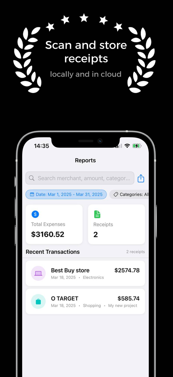 - Search & Filter: Find any receipt in seconds with powerful search options