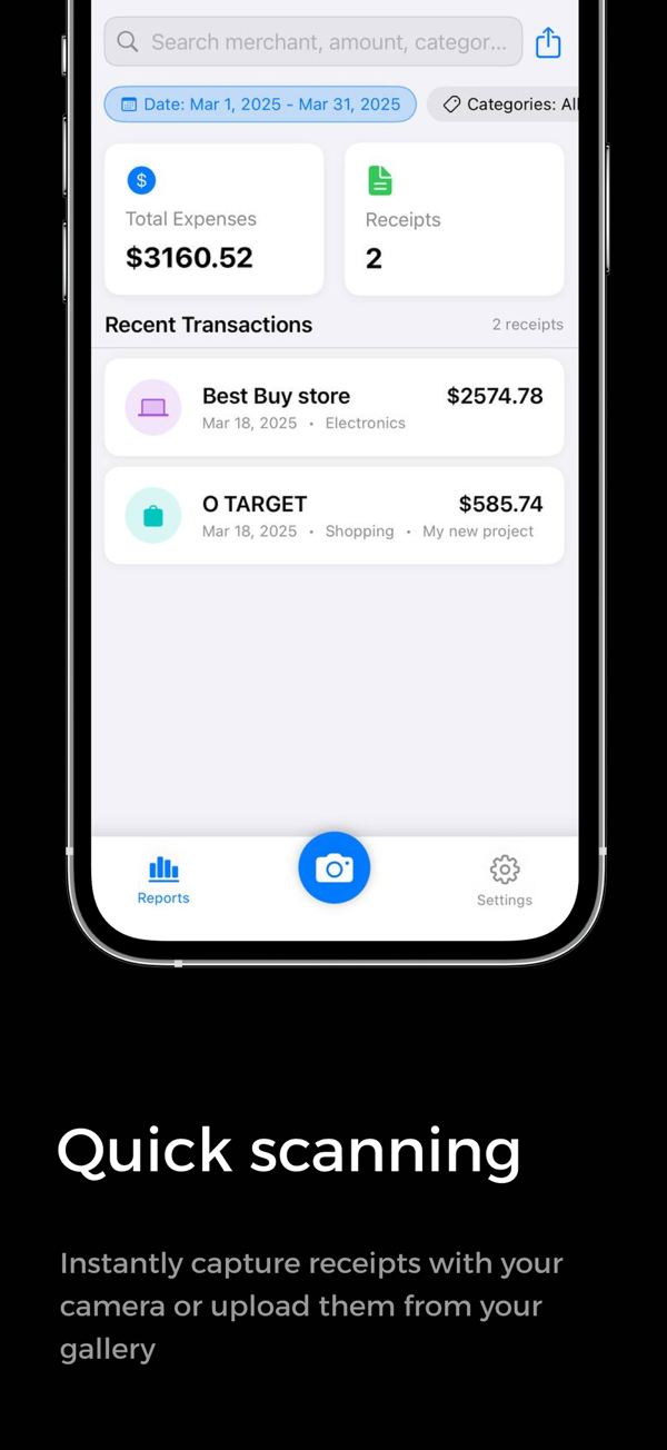 - Quick Scanning: Instantly capture receipts with your camera or upload from the gallery