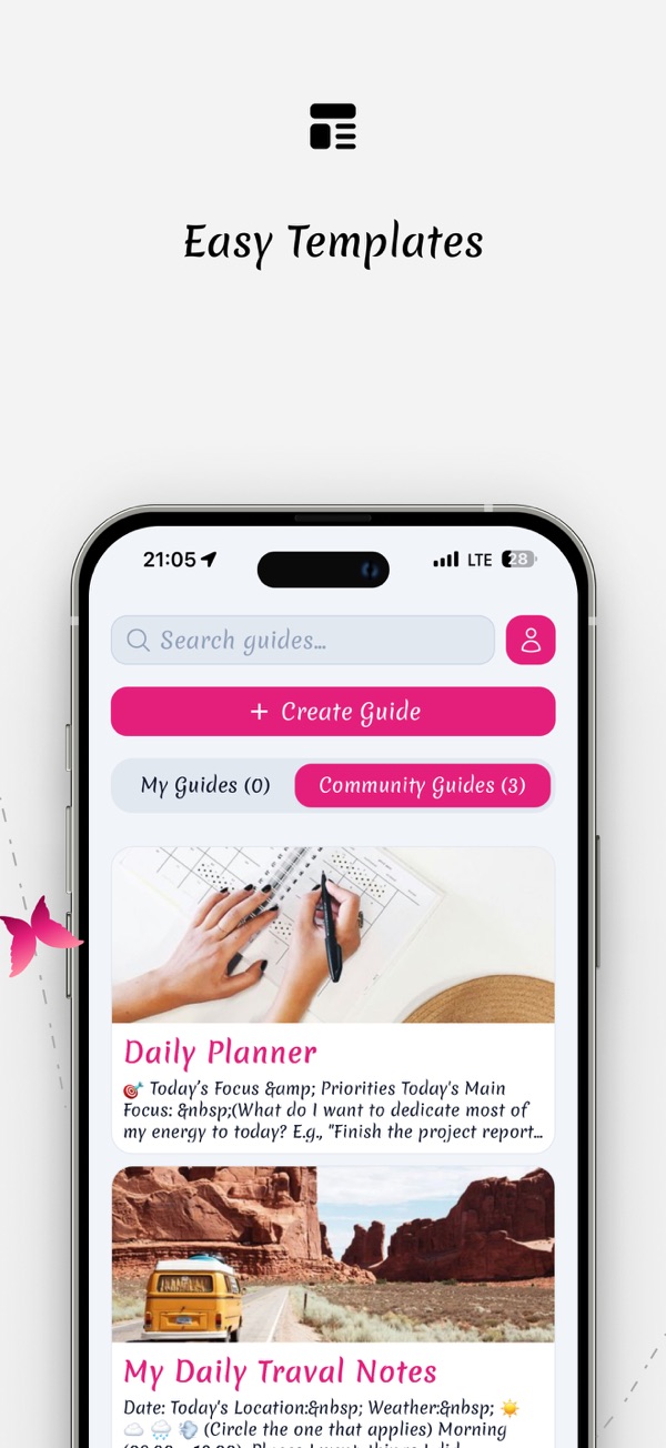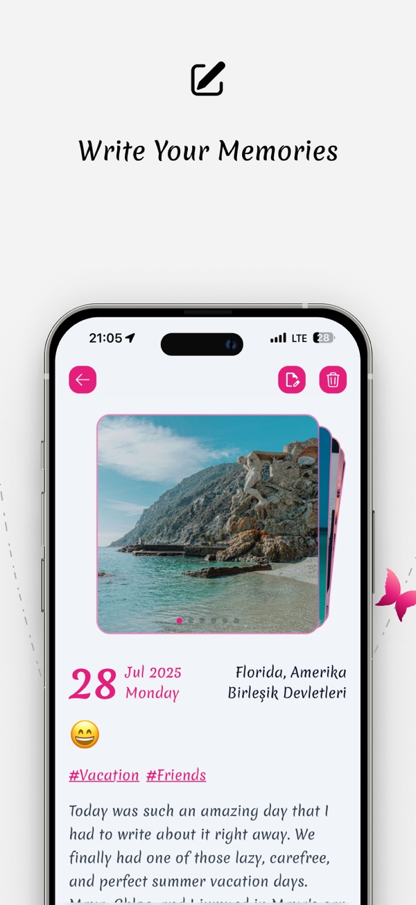 GET STARTED Open your first entry, pick a mood, attach a photo or a short audio clip, write a sentence—momentum grows from small wins.