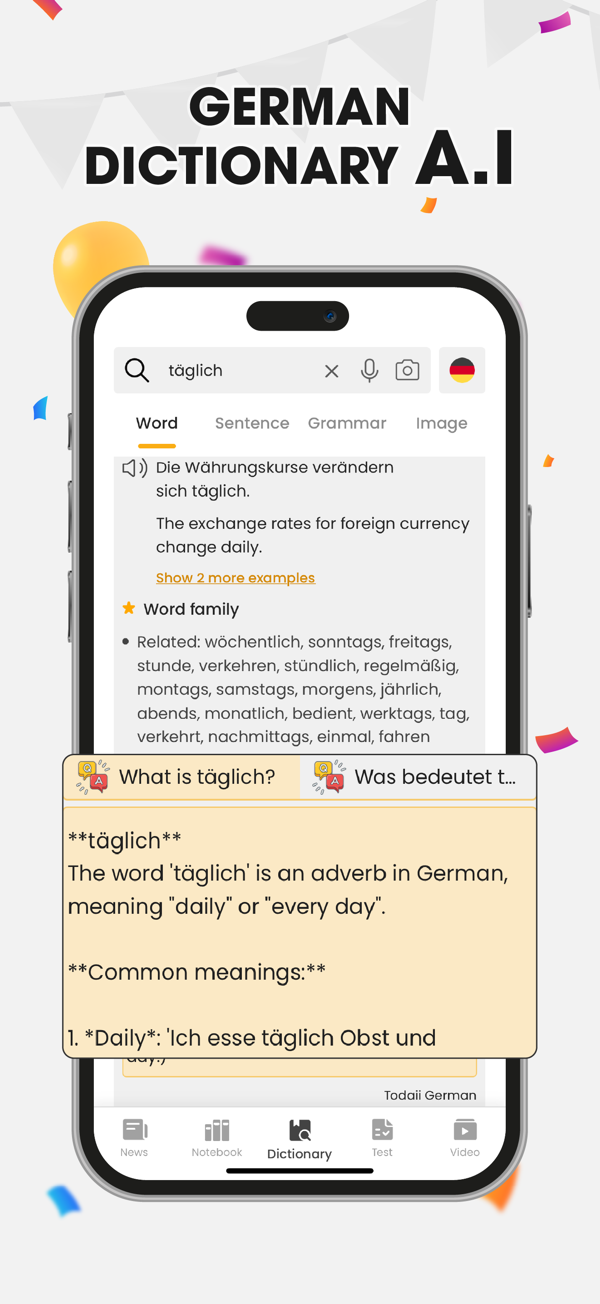 - 通过带语法分析的内置德语词典了解语法规则