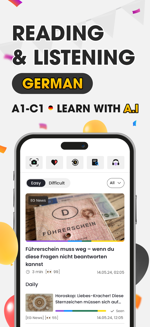 "Easy German News - TODAI" 应用程序适用于: