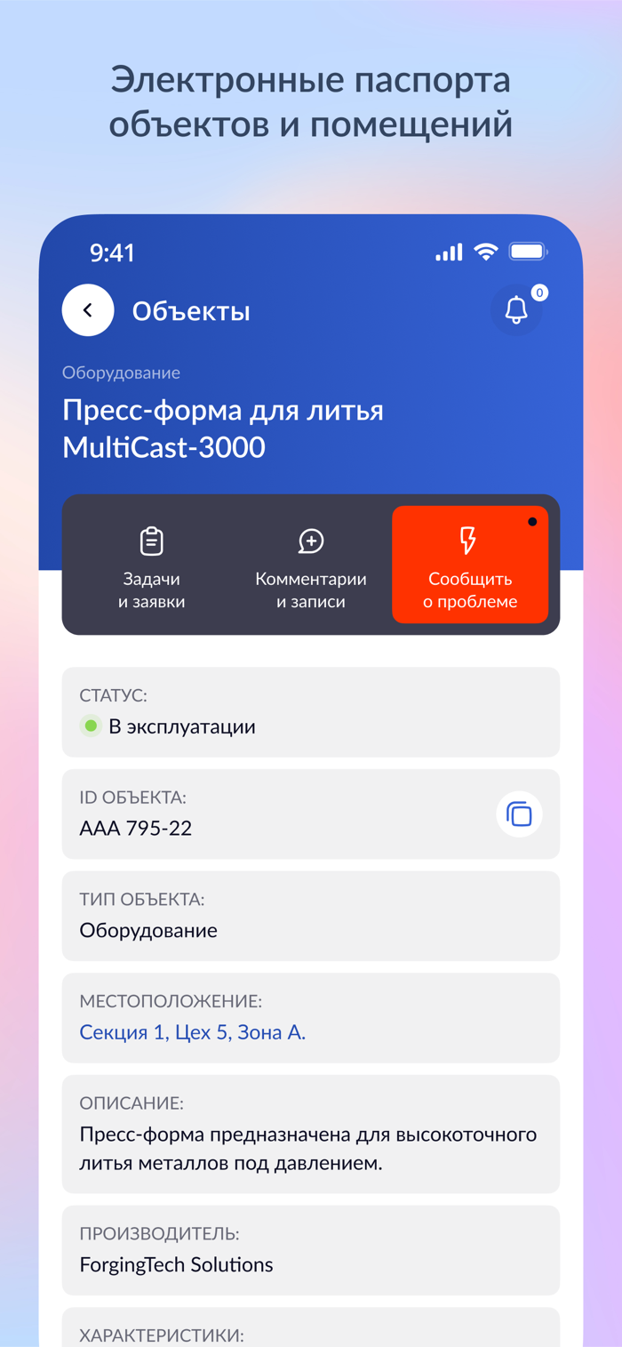 Приложение помогает организациям перейти от бумажных журналов, таблиц и устных поручений к прозрачному цифровому управлению процессами обслуживания и эксплуатации.