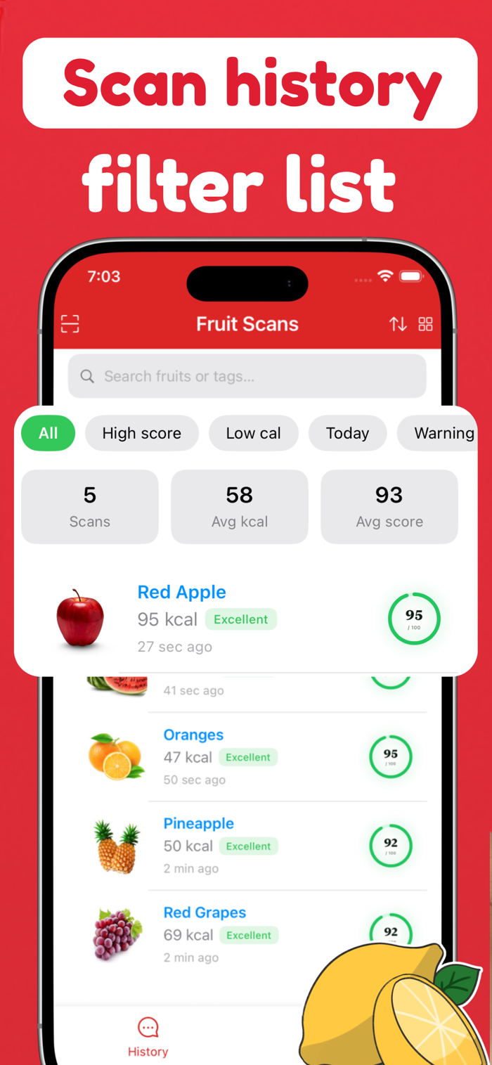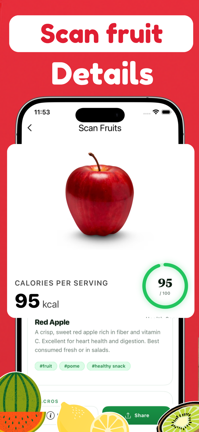 Fruit Scanner App是一款智能AI水果识别与营养分析工具。用相机扫描水果,能瞬间获取名称、卡路里、健康评分及详细营养信息。具备强大的过滤功能、美观的列表与网格视图及基于类别浏览方式。可实现AI水果检测、即时营养分析、提供健康评分与卡路里洞察及详细水果信息,还有智能浏览工具助您快速发现水果并探索其健康益处。
