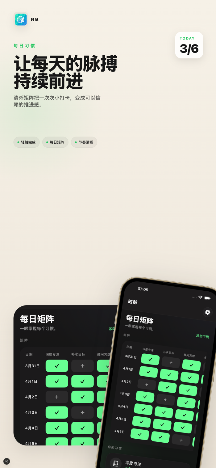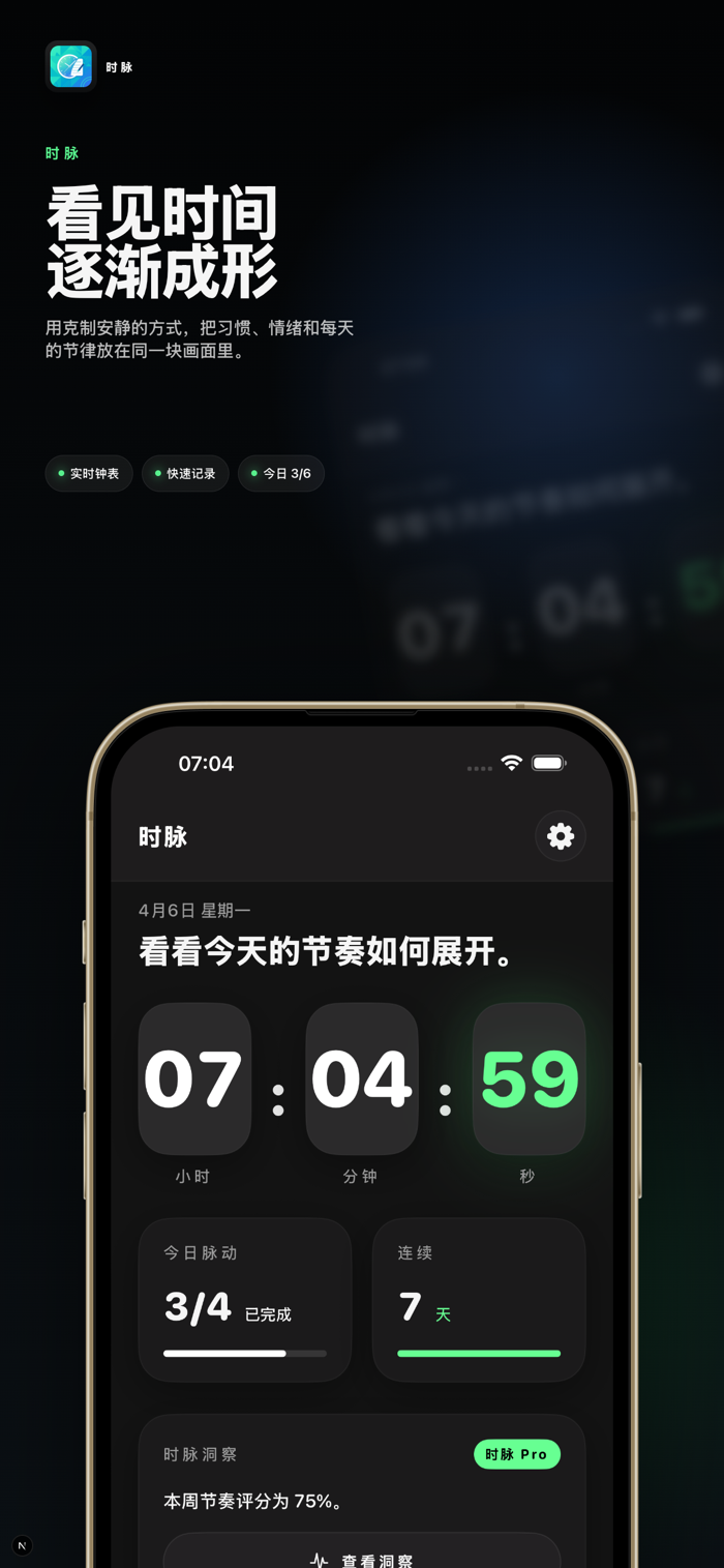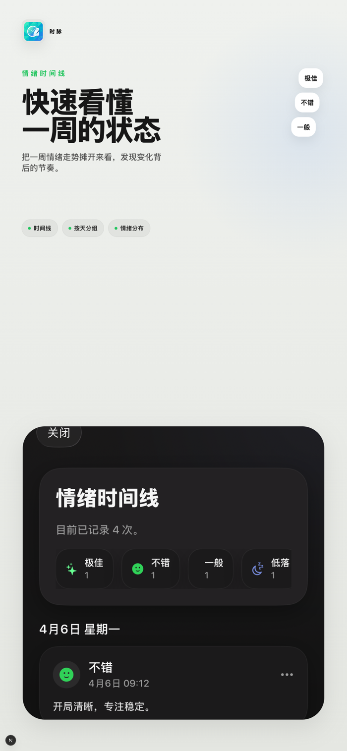 时脉强调快速、清晰和克制,让记录成为日常的一部分,而不是额外负担。