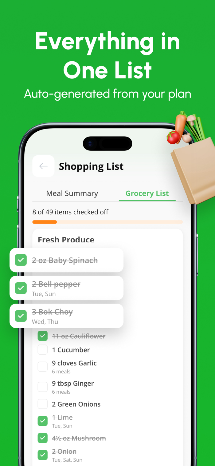 4. Shop and cook: Your shopping list generates automatically, organized by grocery aisle