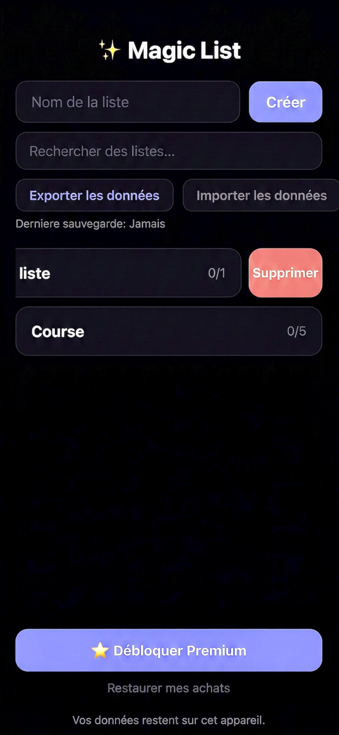 • Unlock unlimited lists with Premium (one-time purchase)