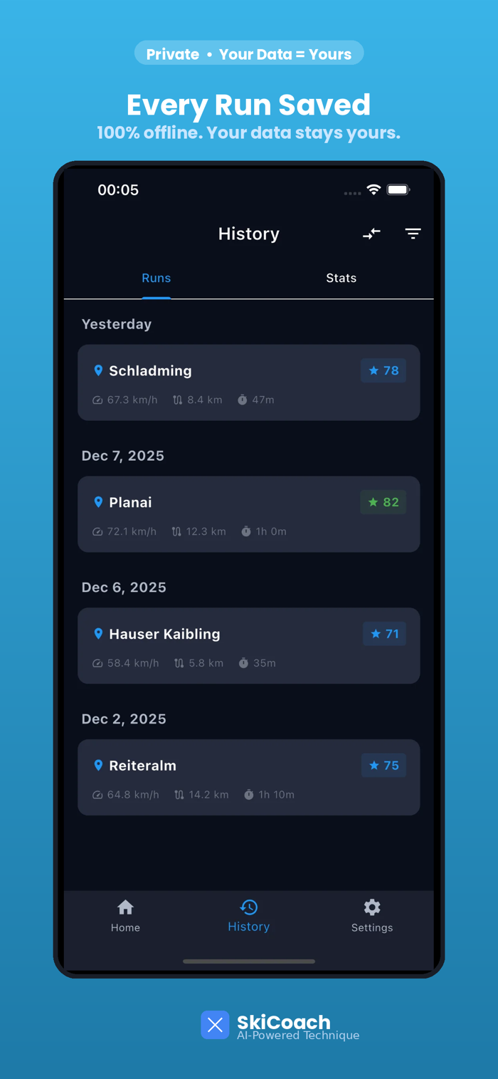 SkiCoach is an offline AI ski coaching app that analyzes your ski technique in real time.
