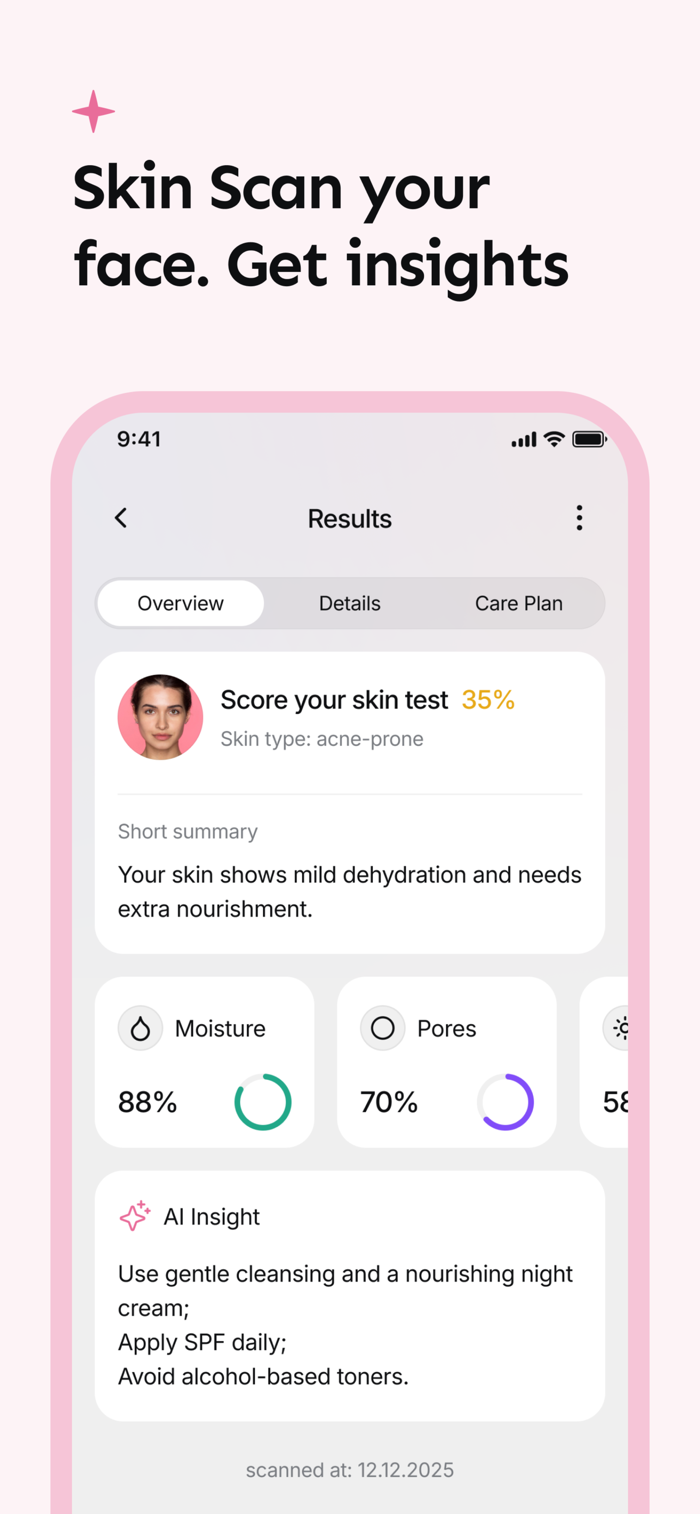 AI 面部与条码扫描,提供科学个性化护肤建议