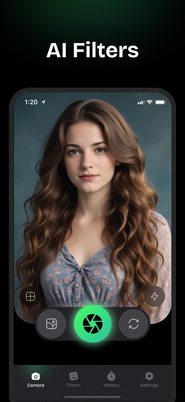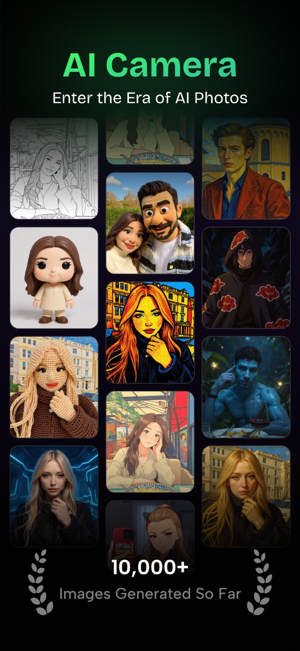 → 实时人工智能相机:拍摄时实时查看滤镜效果。无需编辑——直接拍摄并分享,相机效果实时响应。