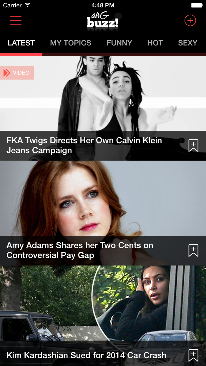 Get your updates on celebrity news, movies and more. Endless videos and articles from the top content sources all in one place. Check out http://buzz.airg.com on your computer when you’re away from your phone or tablet.
