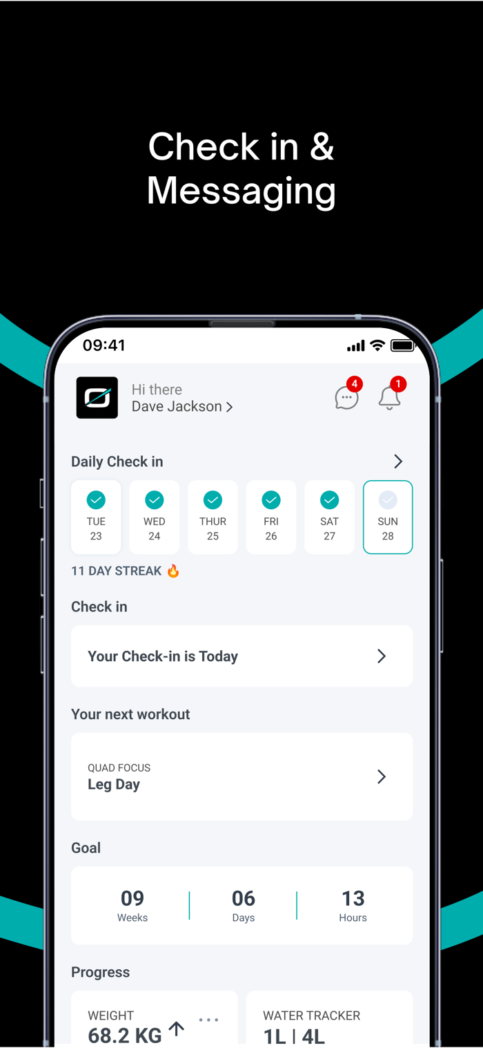 • In-App Messaging for direct coaching support and momentum between check-ins