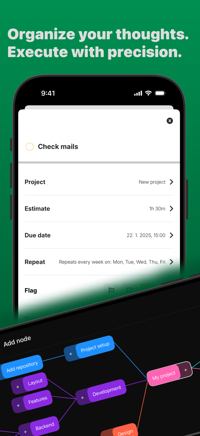 创建项目并将它们分类到文件夹中,以便你能清晰地看到自己的目标和计划。