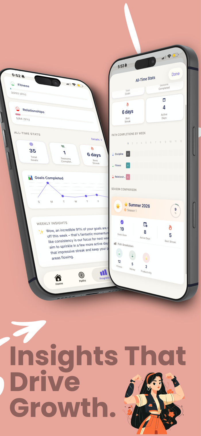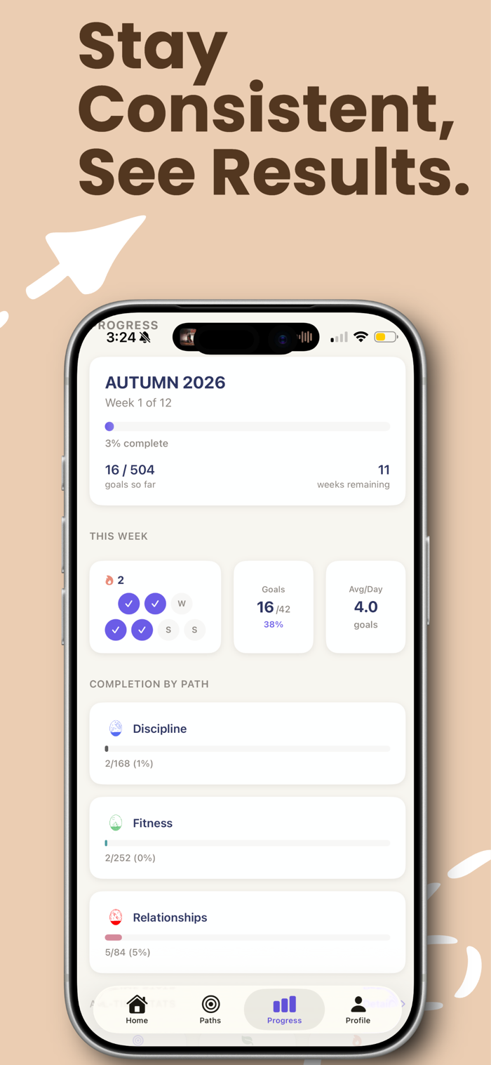 Real transformation takes time. Each season gives you a focused period to work on your chosen paths, with built-in reflection points to celebrate wins and adjust your approach.