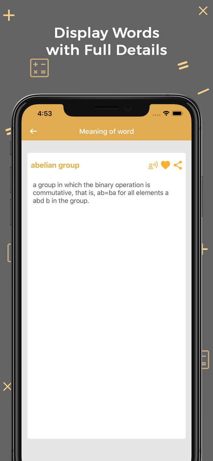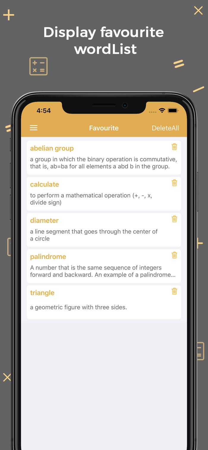 • Access to over 500 Mathematical terms almost anywhere and at any time without anyone’s help.