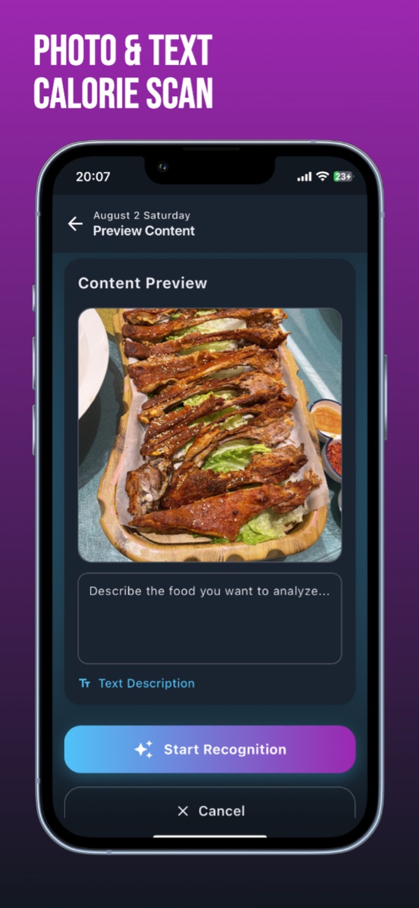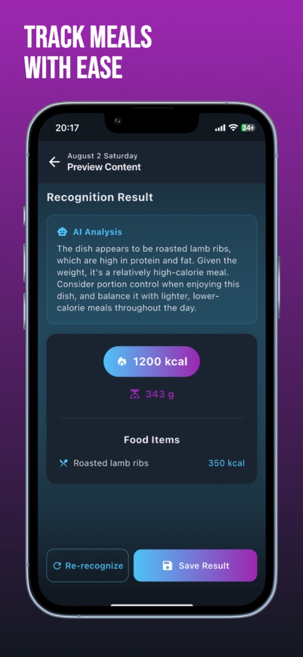 只需拍照,AI即刻识别食物并计算热量,告别繁琐的手动记录,无需猜测食物份量。