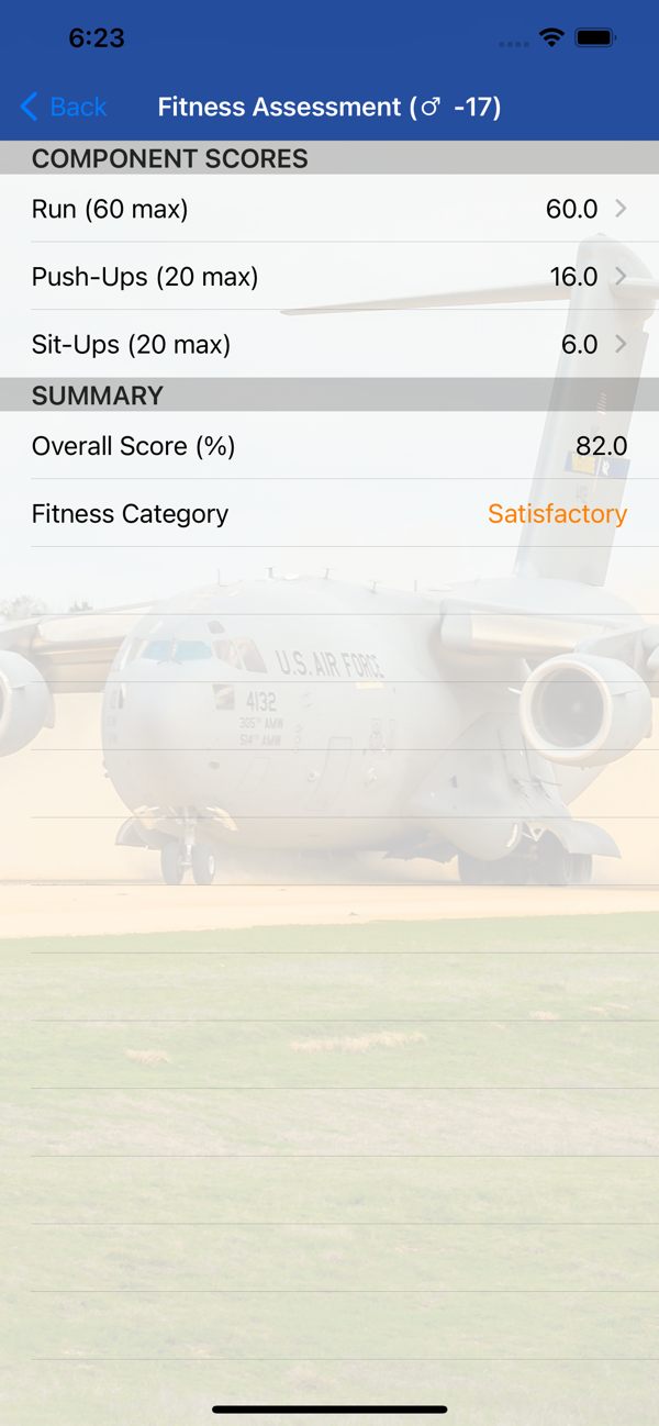 一款功能齐全的空军体能评估应用程序,完全符合2021年7月空军体能图表,支持1.5英里有氧跑步,能计算总分并显示体能类别,提供各项目表现图表且可根据用户输入定制,还提供官方空军指令、网站和视频链接,虽非美国空军制作或认可,但能快速响应问题与反馈。