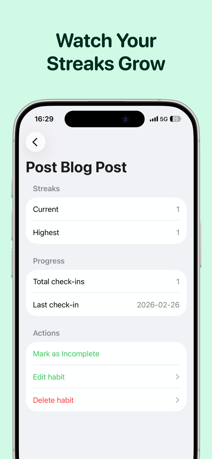 4. Open the habit to review streaks and progress