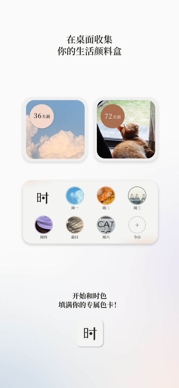 时色,是一款用颜色记录生活的日记:每天从一张照片里选出一个颜色,作为今日【时色】,存入颜色博物馆。久而久之,你会拥有一条只属于自己的色彩时间线,用更轻盈的方式回溯自己的记忆。