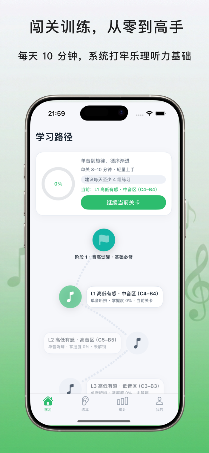 - 新手路径:单音 -> 音级 -> 音程 -> 和弦(含转位)-> 节奏与旋律完形,循序渐进。