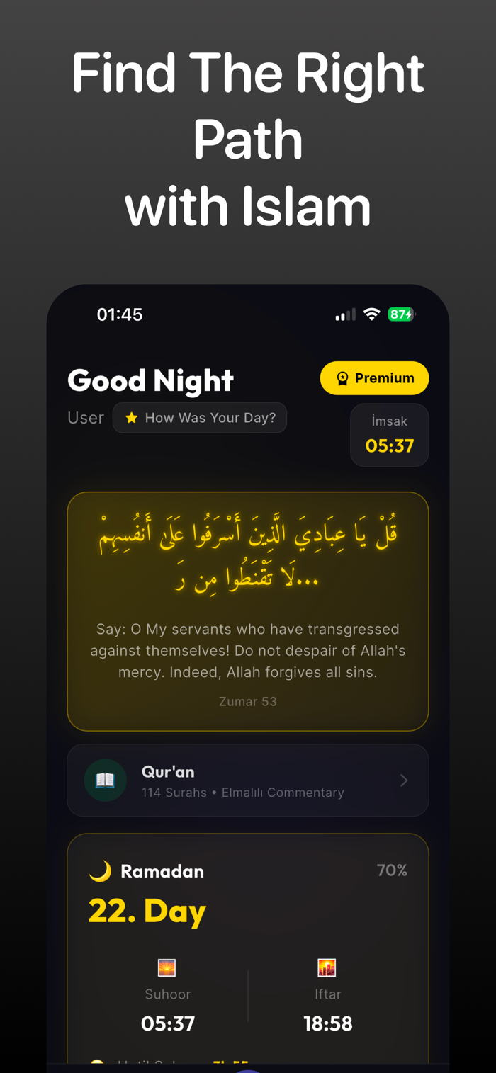 Nefs Reflection & Growth: Monitor your daily habits and spiritual goals with tools built to strengthen your self-discipline and consistency.
