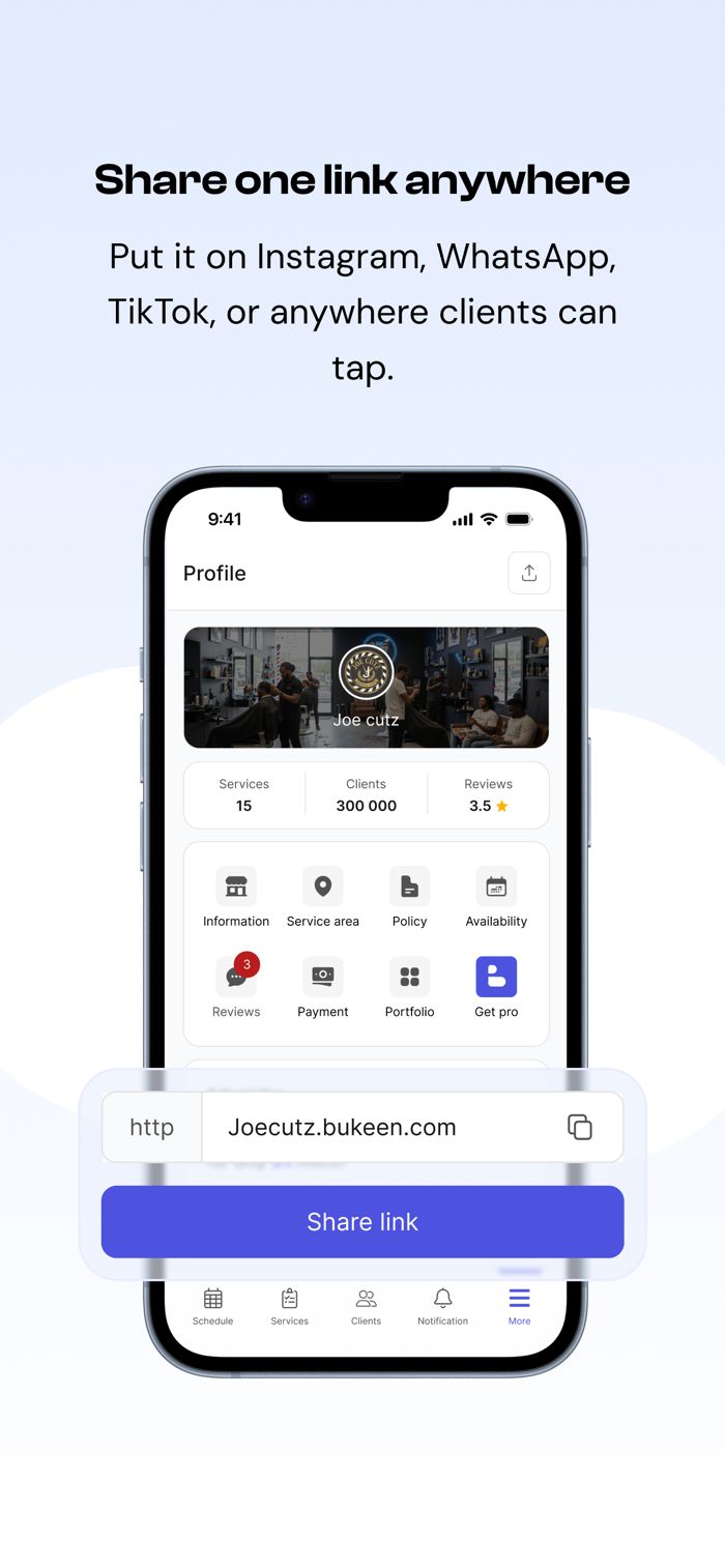 Whether you're a hairstylist, fitness trainer, photographer, tutor, or any independent professional, Bukeen makes it simple to manage your business from your phone.