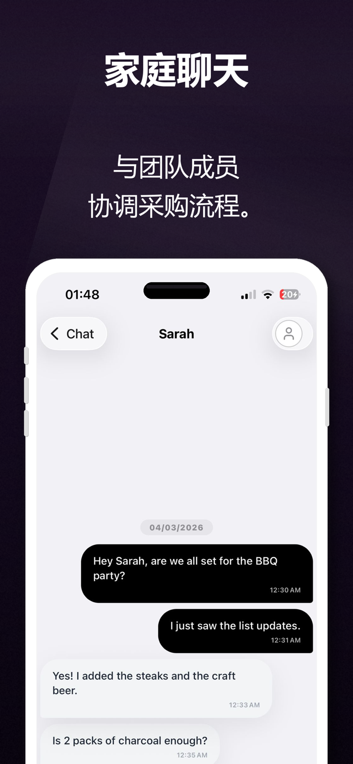 • 家庭聊天:使用内置的伴侣聊天讨论购买、发送照片,并在不离开应用的情况下协调购物。