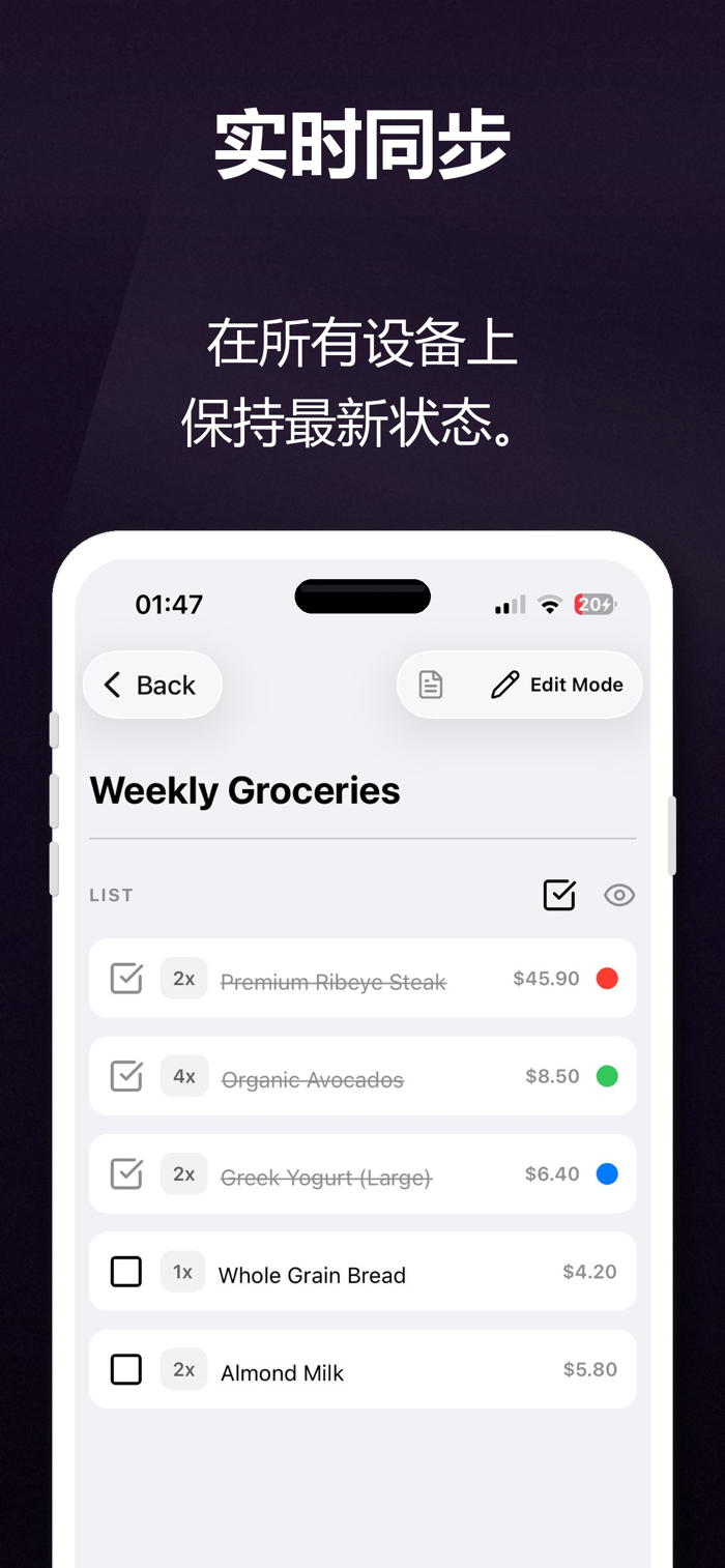• 实时同步:与伴侣或家人共享清单。所有设备上的变更会即时显示。