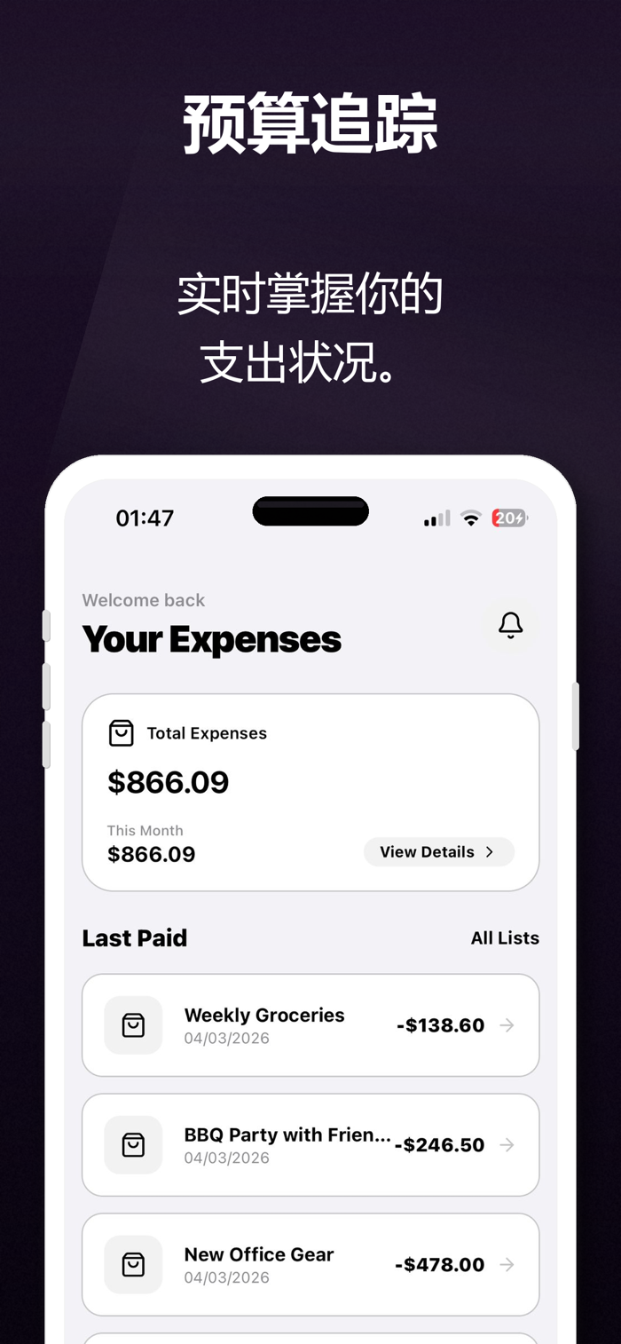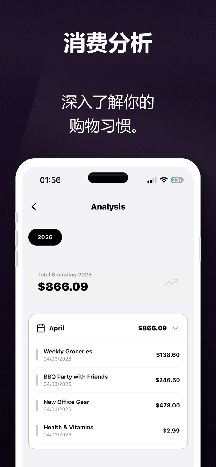 • 预算与支出跟踪:在购物时记录价格,并通过美观、易读的图表分析每月开支。