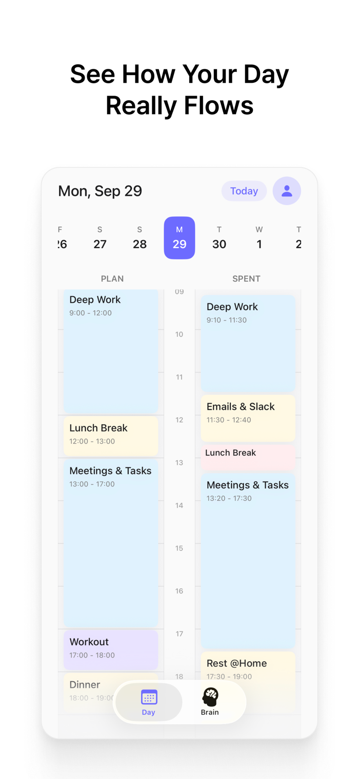亲爱的时光能帮你看清计划与实际时间利用差异。它以双列直观呈现一天,精确到5分钟记录,可观察时间模式。界面简洁温和,无游戏化与压力。“大脑”标签页助记想法任务。具备双列时间视图、周导航等强大功能,支持苹果登录保障隐私,可跨设备安全云同步,适合好奇日常节奏、寻求自我觉察、想了解时间模式及厌倦激进效率工具的人。