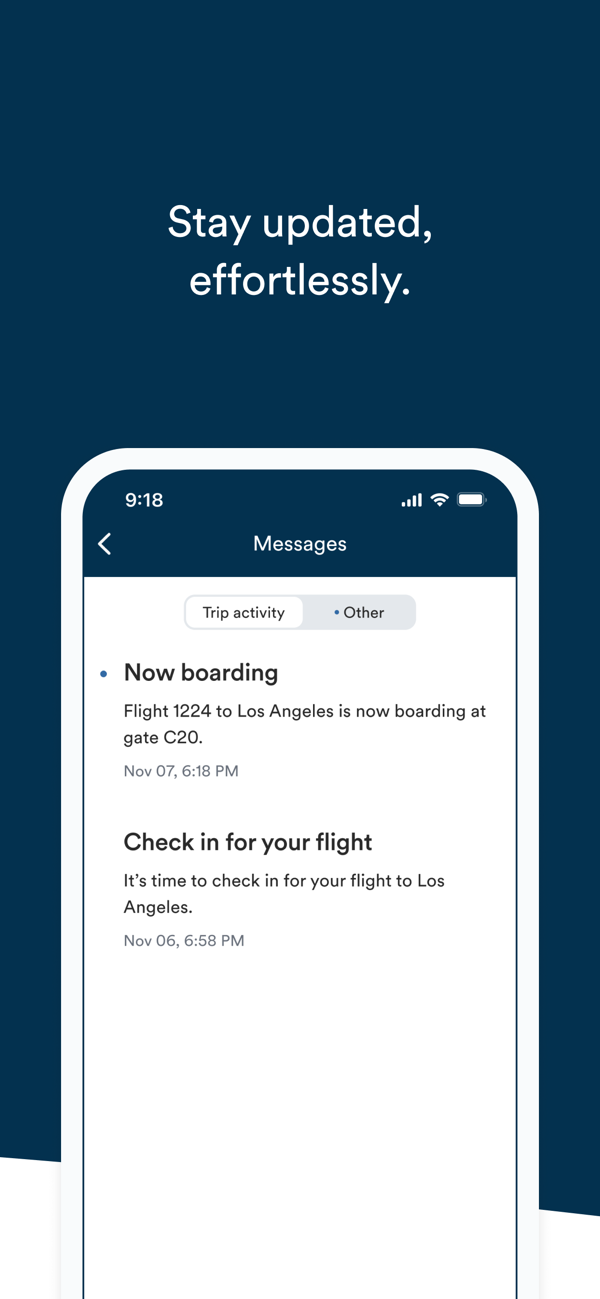 • Get real-time flight and travel updates pushed directly to your phone