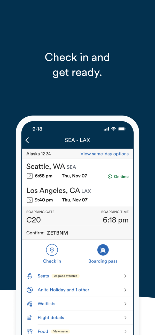 • Share boarding passes, and flight details with family and friends