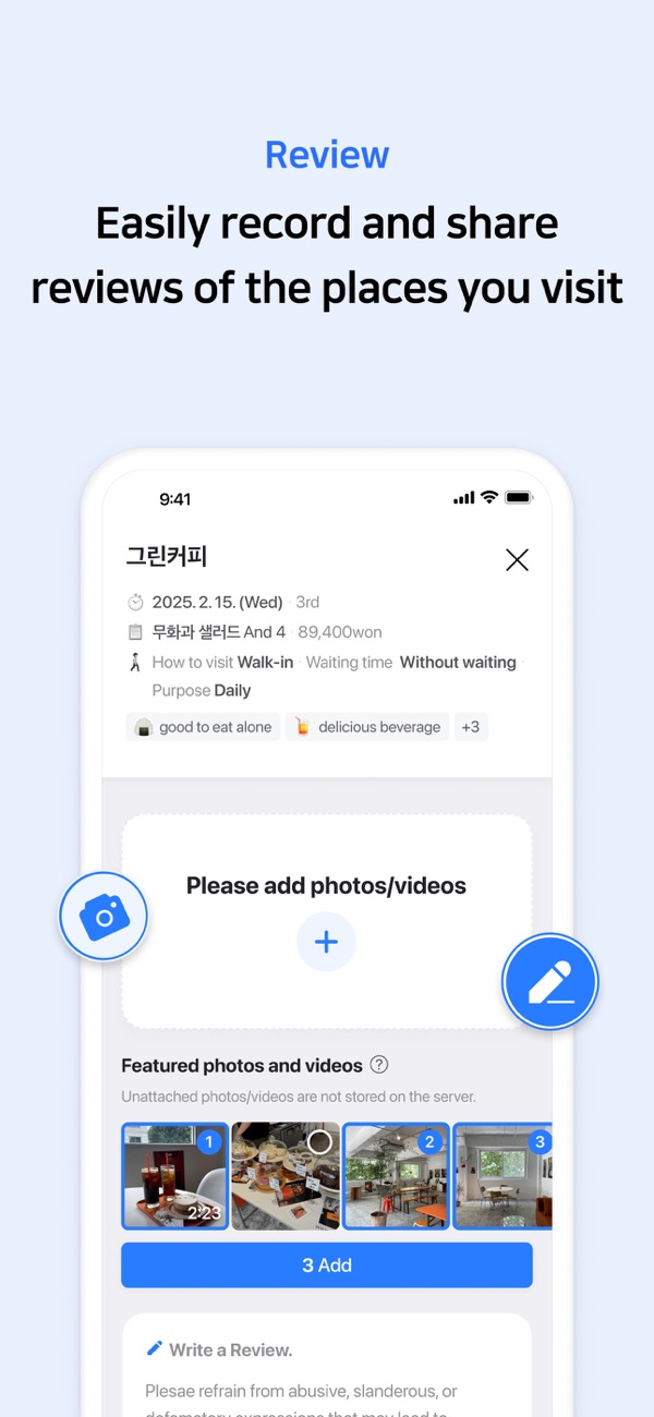 Easily save your best restaurants and must-visit tourist spots on NAVER Map and share them with others.