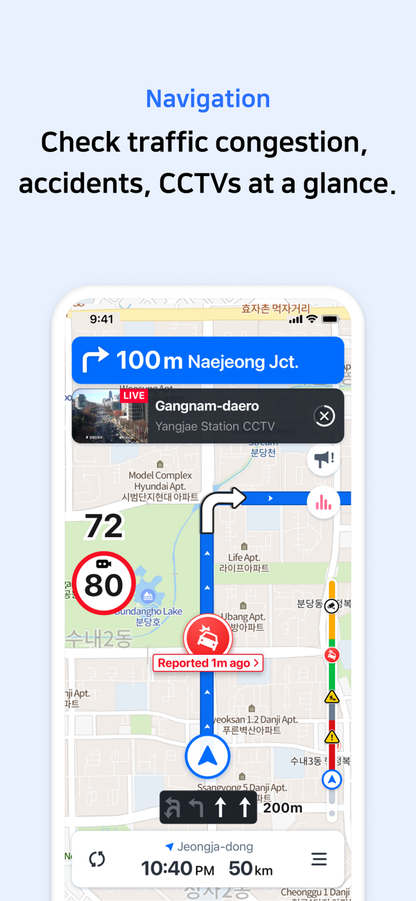Fast and accurate navigation with real-time traffic info and optimized usability for any driving condition.