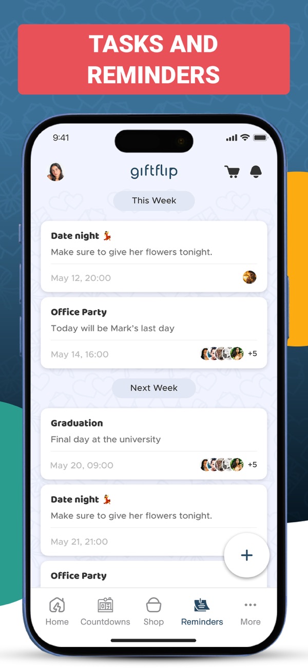 • Custom reminders for any event or task