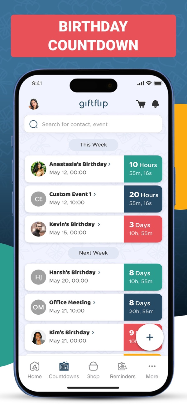 • Personalized countdowns for upcoming moments