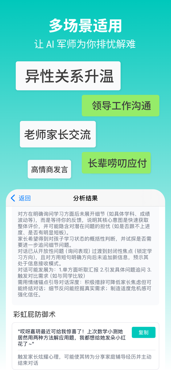 智能对话解析,精准策略回复,社交掌控助手。