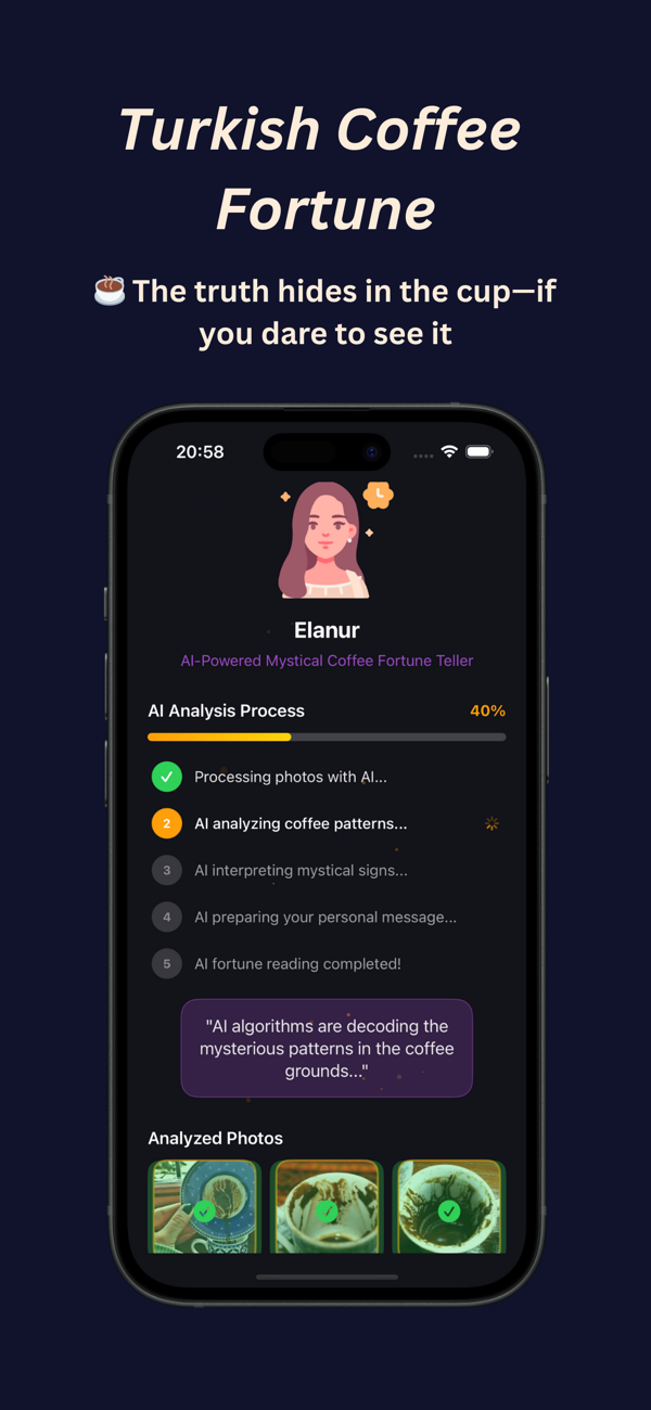 Falistan 并非普通的算命应用,而是古老仪式与现代科技融合的神圣空间。它能帮你揭开未知,探寻清晰、治愈、爱情等答案。其核心功能包括:通过人工智能精准解读传统土耳其咖啡占卜图案;塔罗牌占卜(涵盖过去、现在和未来);利用人工智能增强扫描仪进行面部解读,从面部线条、形状和表情中解码人生轨迹,满足你对宇宙奥秘的好奇与探索需求。