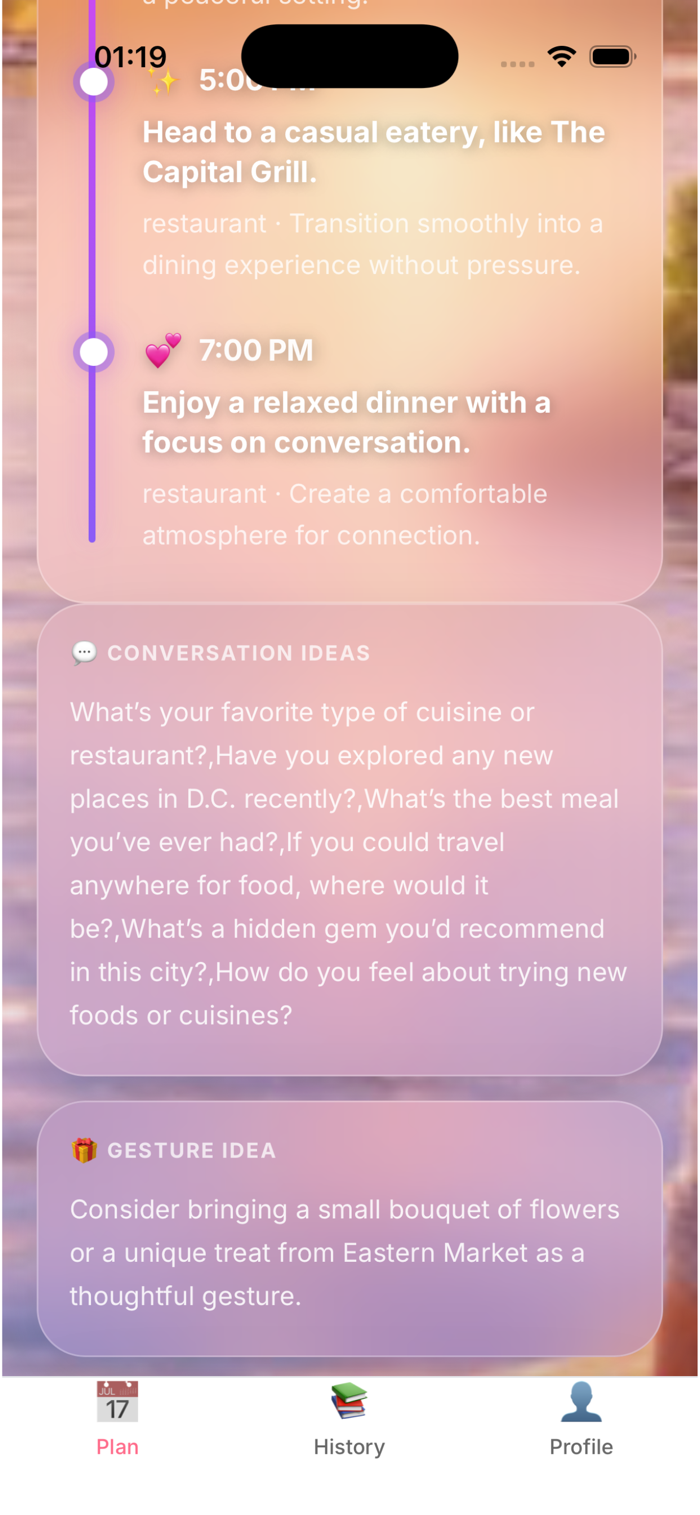 依多因素输入生成约会计划,提供多方面实用建议
