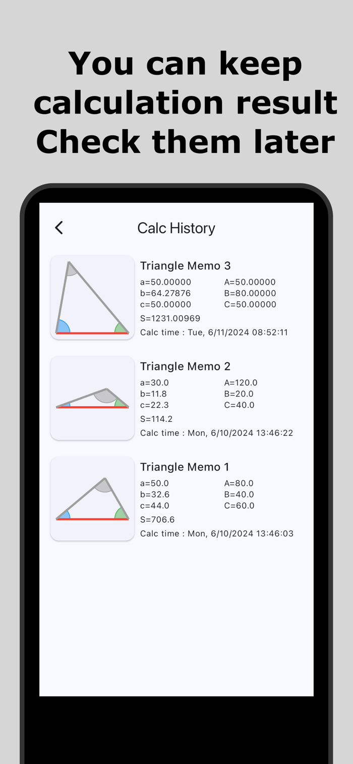支持多模式计算三角形,可保存历史及备注结果
