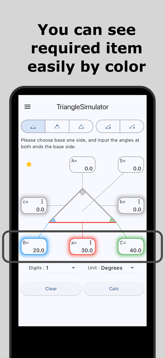 这款 app 可计算三角形,能依据边和角来计算,有多种计算模式可选,能即时查看三角形的边、角及面积,还可保存计算历史以便后续查看,能看到实际三角形图像,可给结果输入备注,输入边和角轻松,支持输入平方根形式的边长,能调整结果位数、选择角度单位。使用条款:https://coconutsdevelop.com/en/terms/terms_of_use.html 开发者网站:https://coconutsdevelop.com/