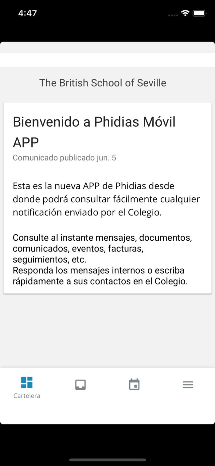 Aplicación móvil de comunicaciones del British School of Seville