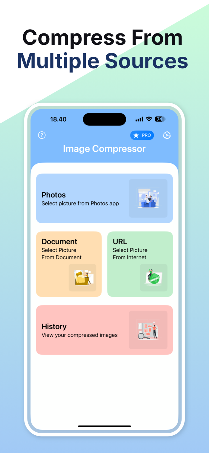 Multiple Sources: Choose images from photos, documents, or URLs.