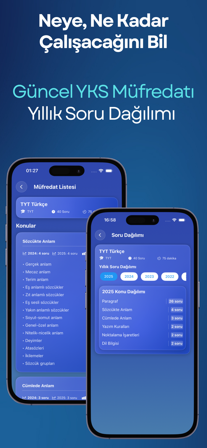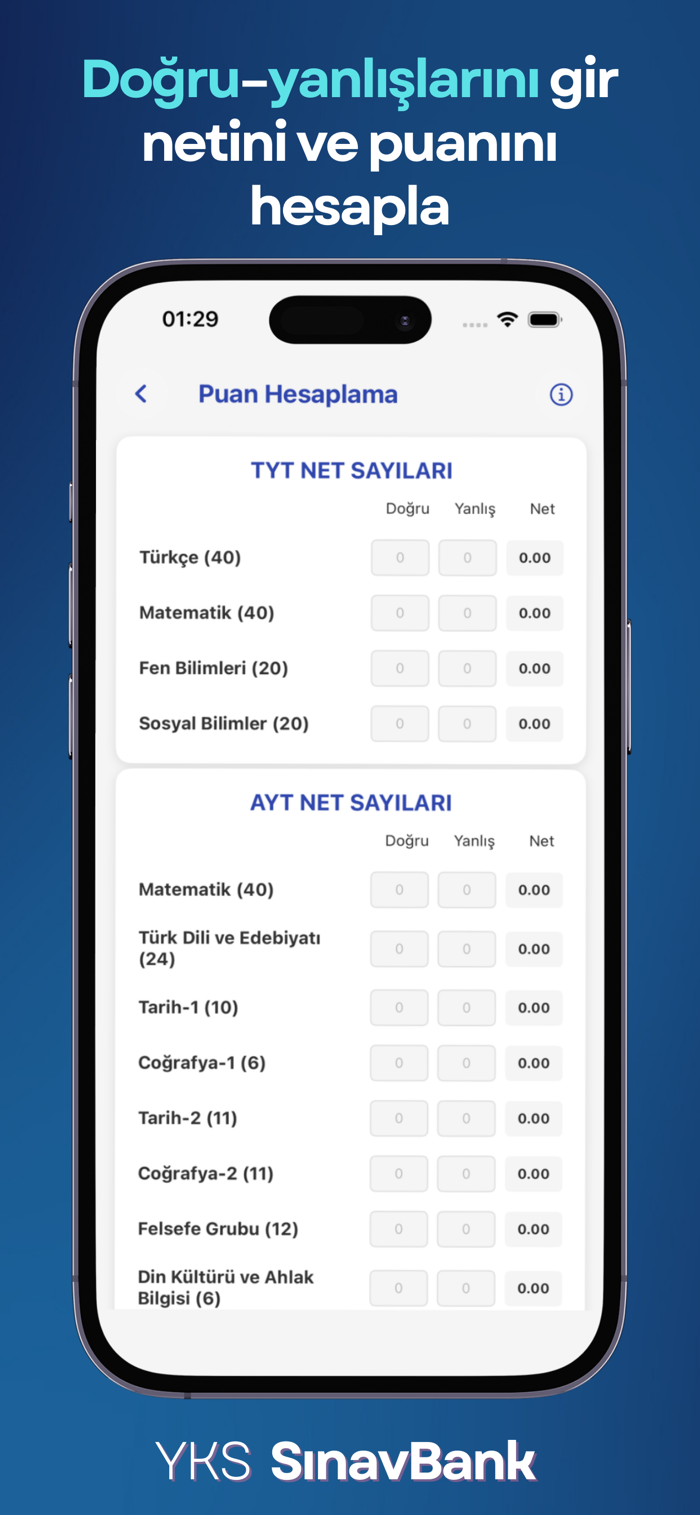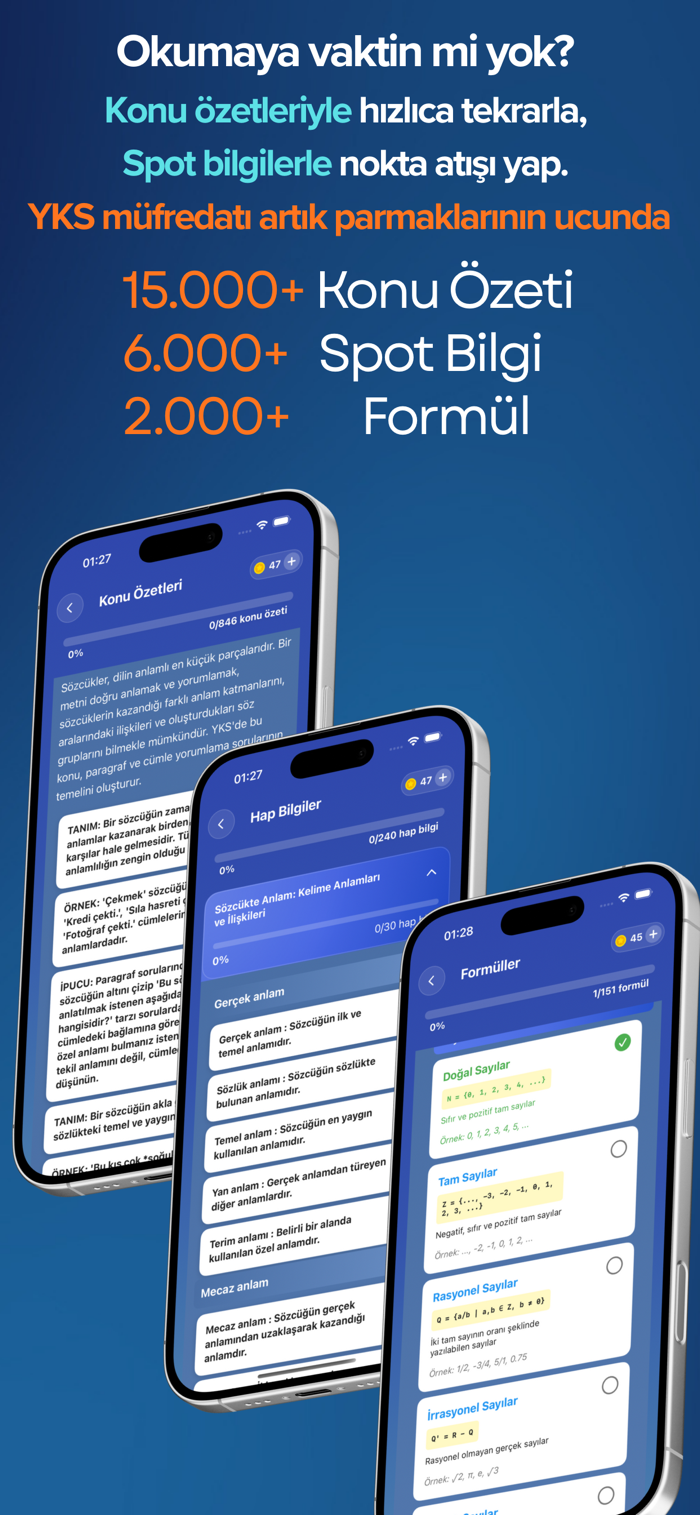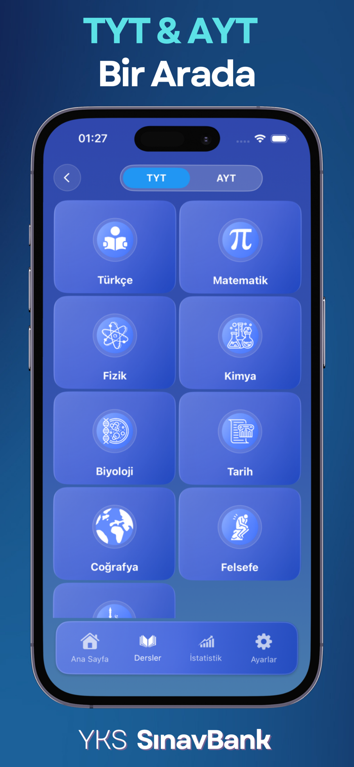 高考银行(YKS SınavBank)为准备2026年高考的学生提供主题摘要、知识点信息、过往试题分布、测试以及大学基础分数,助力提高考试成绩。