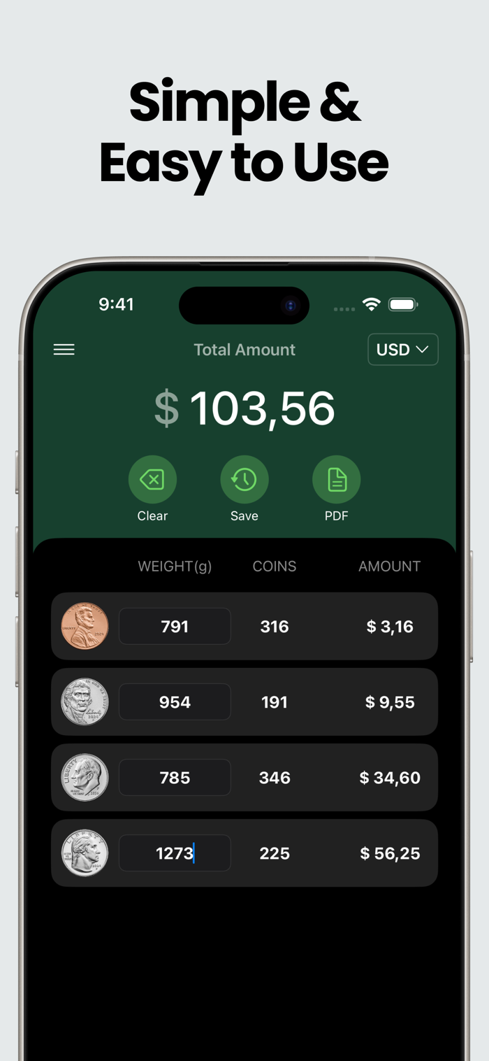 Coin Counter是一款终极现金计数应用程序,可通过重量快速准确地计数硬币。支持11种货币,无论是企业主、收银员还是常处理现金者,将硬币放秤上输入重量就能立即获得现金总值,轻松计数,节省时间,高效准确,适用于个人和商业用途,从此告别手动数硬币,让现金计数更便捷有序。