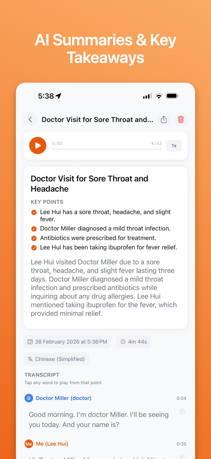 - Speaker Identification: Automatically detects and labels multiple speakers. Name them for clearer, more organised transcripts.