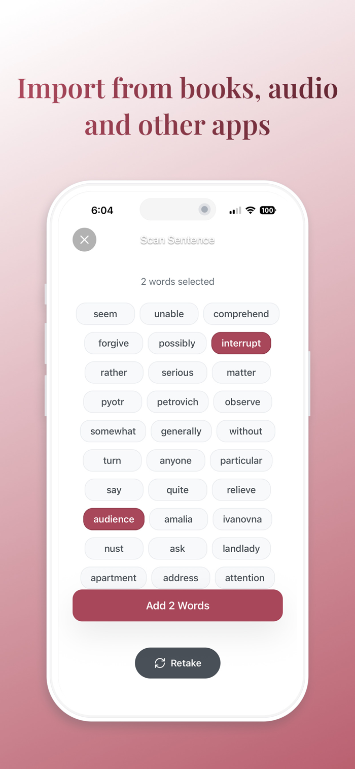 Encounter a new word in a physical book? Snap a photo with text recognition. Reading in another app? Use our share extension to instantly capture words from any reading app, browser, or e-reader. LexiForge works wherever you learn.